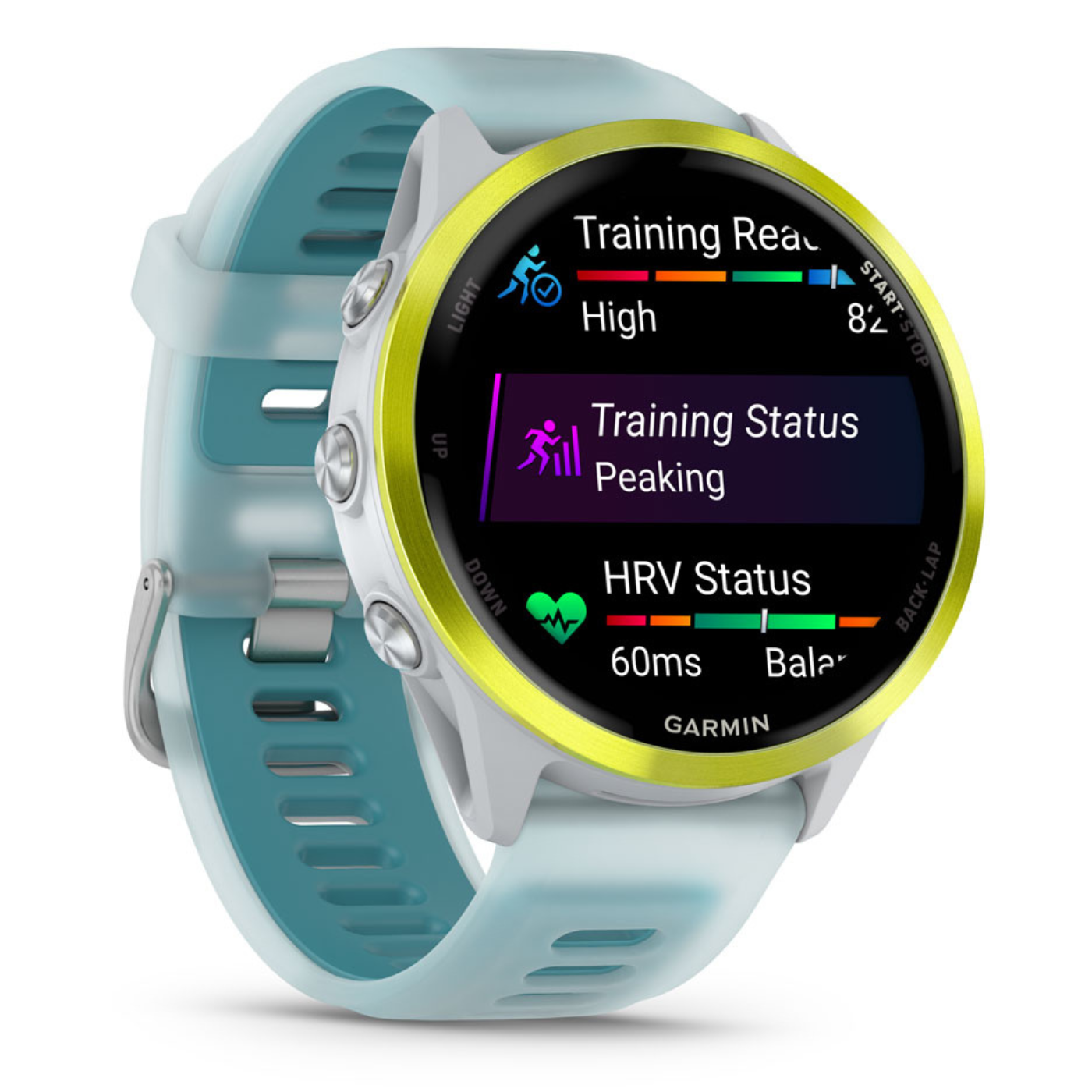 Run with confidence. Experience peak performance with our brightest AMOLED display and a sleek, lightweight aluminum bezel designed for comfort and clarity. Stay effortlessly connected during your workouts with a built-in speaker and microphone that let you take calls on the go. Trust in your training with advanced performance features that adapt to your goals. Whether you're preparing for your first 5K or your next triathlon, personalized Garmin Coach training plans help you get race-ready with expert guidance every step of the way.